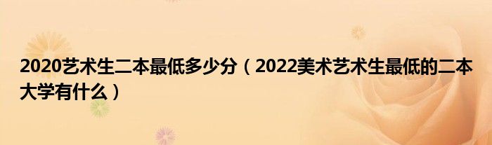 大家好,小高来为大家解答以上问题。2020艺术生二本最低多少分,2022美术艺术生最低的二本大学有什么很多人还不知道,现在让我们一起来看看吧!