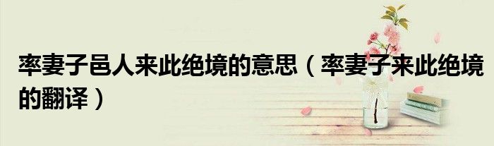 大家好,小源来为大家解答以上问题。率妻子邑人来此绝境的意思,率妻子来此绝境的翻译很多人还不知道,现在让我们一起来看看吧!