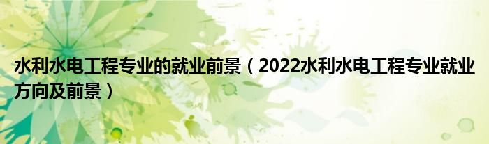 大家好,小高来为大家解答以上问题。水利水电工程专业的就业前景,2022水利水电工程专业就业方向及前景很多人还不知道,现在让我们一起来看看吧!
