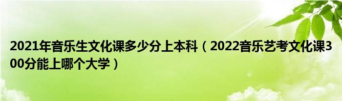 大家好,小高来为大家解答以上问题。2021年音乐生文化课多少分上本科,2022音乐艺考文化课300分能上哪个大学很多人还不知道,现在让我们一起来看看吧!