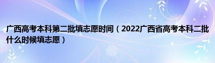 大家好,小高来为大家解答以上问题。广西高考本科第二批填志愿时间,2022广西省高考本科二批什么时候填志愿很多人还不知道,现在让我们一起来看看吧!
