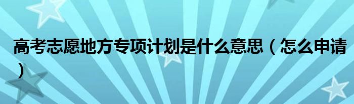 大家好,小高来为大家解答以上问题。高考志愿地方专项计划是什么意思,怎么申请很多人还不知道,现在让我们一起来看看吧!
