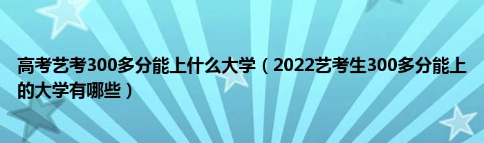 大家好,小高来为大家解答以上问题。高考艺考300多分能上什么大学,2022艺考生300多分能上的大学有哪些很多人还不知道,现在让我们一起来看看吧!