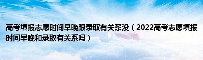 大家好,小高来为大家解答以上问题。高考填报志愿时间早晚跟录取有关系没,2022高考志愿填报时间早晚和录取有关系吗很多人还不知道,现在让我们一起来看看吧!