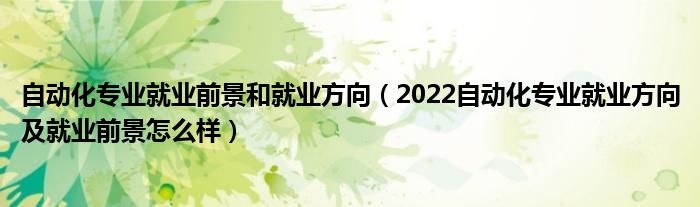 1.自动化专业就业前景本专业毕业生有着广阔的就业渠道,因为自动化技术的应用广泛,其就业领域也五花八门。