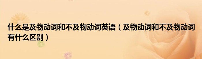 大家好,小高来为大家解答以上问题。什么是及物动词和不及物动词英语,及物动词和不及物动词有什么区别很多人还不知道,现在让我们一起来看看吧!