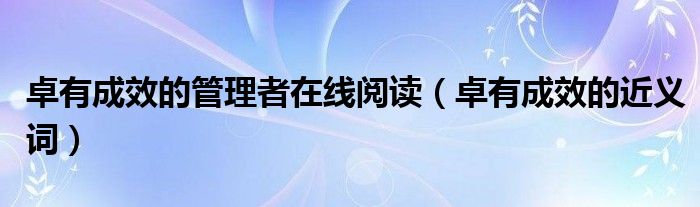 大家好,小高来为大家解答以上问题。卓有成效的管理者在线阅读,卓有成效的近义词很多人还不知道,现在让我们一起来看看吧!