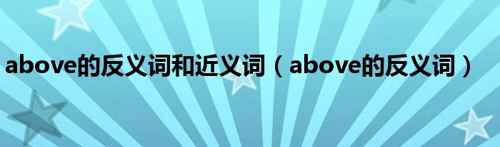 大家好,小高来为大家解答以上问题。above的反义词和近义词,above的反义词很多人还不知道,现在让我们一起来看看吧!