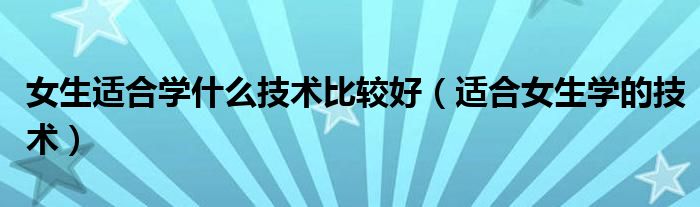 大家好,小高来为大家解答以上问题。女生适合学什么技术比较好,适合女生学的技术很多人还不知道,现在让我们一起来看看吧!