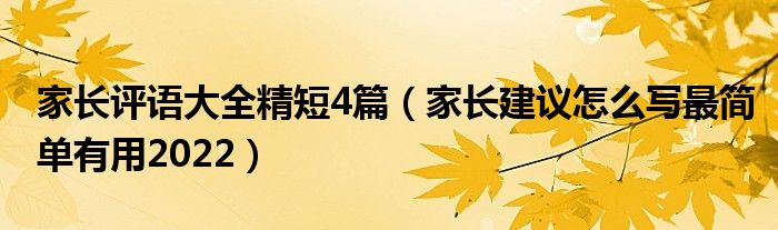 大家好,小高来为大家解答以上问题。家长评语大全精短4篇,家长建议怎么写最简单有用2022很多人还不知道,现在让我们一起来看看吧!