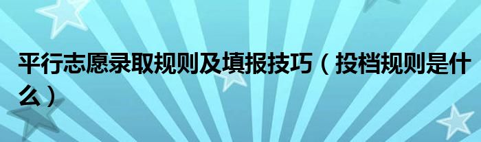 大家好,小高来为大家解答以上问题。平行志愿录取规则及填报技巧,投档规则是什么很多人还不知道,现在让我们一起来看看吧!