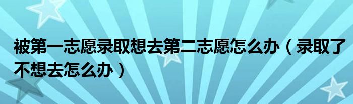 大家好,小高来为大家解答以上问题。被第一志愿录取想去第二志愿怎么办,录取了不想去怎么办很多人还不知道,现在让我们一起来看看吧!