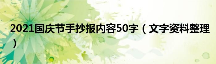 大家好,小高来为大家解答以上问题。2021国庆节手抄报内容50字,文字资料整理很多人还不知道,现在让我们一起来看看吧!