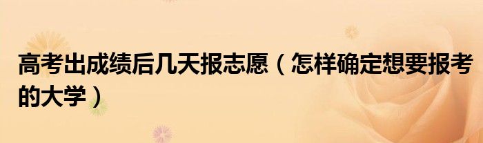 大家好,小高来为大家解答以上问题。高考出成绩后几天报志愿,怎样确定想要报考的大学很多人还不知道,现在让我们一起来看看吧!