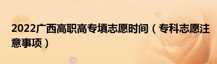 大家好,小高来为大家解答以上问题。2022广西高职高专填志愿时间,专科志愿注意事项很多人还不知道,现在让我们一起来看看吧!