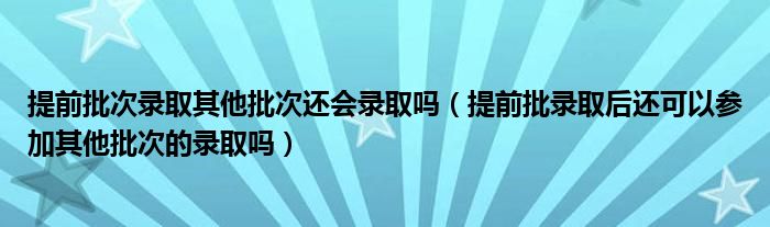大家好,小高来为大家解答以上问题。提前批次录取其他批次还会录取吗,提前批录取后还可以参加其他批次的录取吗很多人还不知道,现在让我们一起来看看吧!