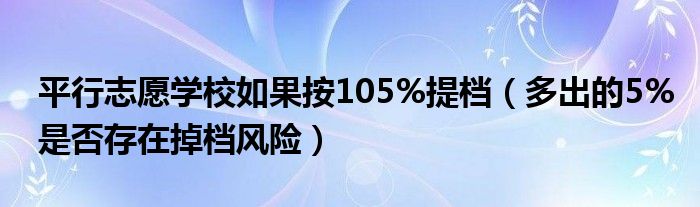 大家好,小高来为大家解答以上问题。平行志愿学校如果按105%提档,多出的5%是否存在掉档风险很多人还不知道,现在让我们一起来看看吧!
