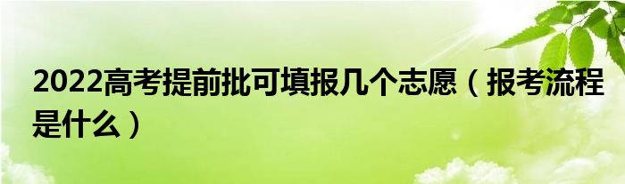 大家好,小高来为大家解答以上问题。2022高考提前批可填报几个志愿,报考流程是什么很多人还不知道,现在让我们一起来看看吧!