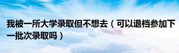 大家好,小高来为大家解答以上问题。我被一所大学录取但不想去,可以退档参加下一批次录取吗很多人还不知道,现在让我们一起来看看吧!