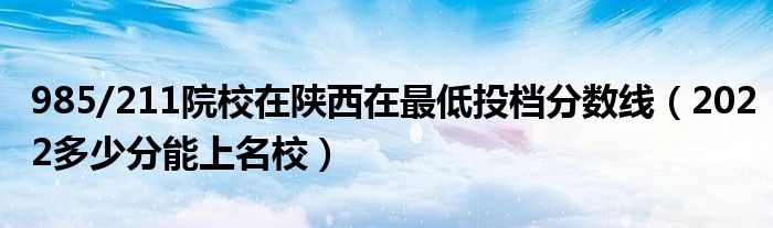 大家好,小高来为大家解答以上问题。985/211院校在陕西在最低投档分数线,2022多少分能上名校很多人还不知道,现在让我们一起来看看吧!