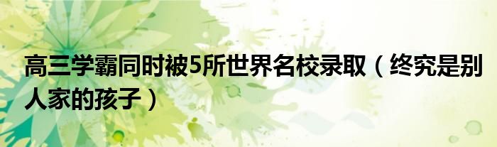 大家好,小高来为大家解答以上问题。高三学霸同时被5所世界名校录取,终究是别人家的孩子很多人还不知道,现在让我们一起来看看吧!