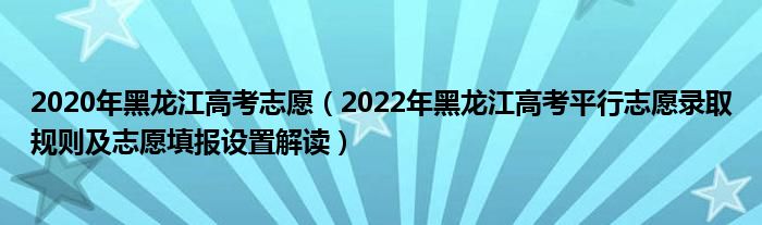 大家好,小高来为大家解答以上问题。2020年黑龙江高考志愿,2022年黑龙江高考平行志愿录取规则及志愿填报设置解读很多人还不知道,现在让我们一起来看看吧!