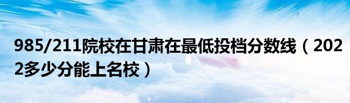大家好,小高来为大家解答以上问题。985/211院校在甘肃在最低投档分数线,2022多少分能上名校很多人还不知道,现在让我们一起来看看吧!
