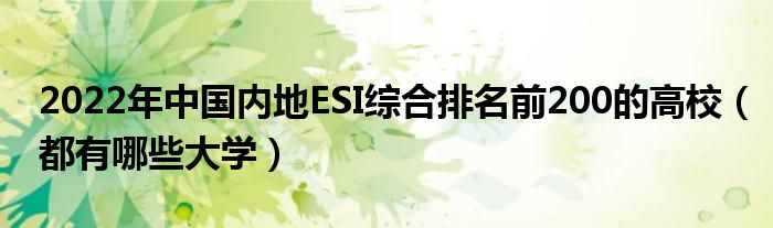 大家好,小高来为大家解答以上问题。2022年中国内地ESI综合排名前200的高校,都有哪些大学很多人还不知道,现在让我们一起来看看吧!