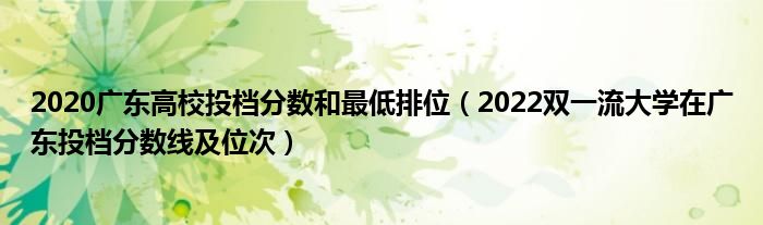 大家好,小高来为大家解答以上问题。2020广东高校投档分数和最低排位,2022双一流大学在广东投档分数线及位次很多人还不知道,现在让我们一起来看看吧!