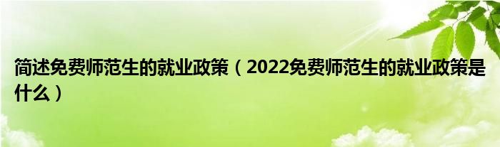 大家好,小高来为大家解答以上问题。简述免费师范生的就业政策,2022免费师范生的就业政策是什么很多人还不知道,现在让我们一起来看看吧!