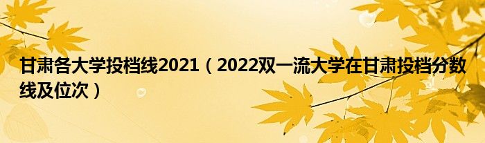 大家好,小高来为大家解答以上问题。甘肃各大学投档线2021,2022双一流大学在甘肃投档分数线及位次很多人还不知道,现在让我们一起来看看吧!