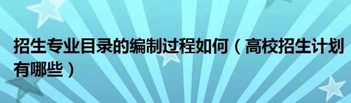 大家好,小高来为大家解答以上问题。招生专业目录的编制过程如何,高校招生计划有哪些很多人还不知道,现在让我们一起来看看吧!