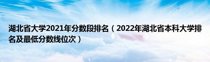 1、注:2022年湖北省本科大学排名已经公布,但本科大学的最低录取分数线和最低位次还没有公布,以上本科大学分数线为2021年数据,仅供参考,具体以官方公布为准。以上是部分学校排名信息,想要查看全部学校排名及分数线请下载蝶变志愿APP查看。