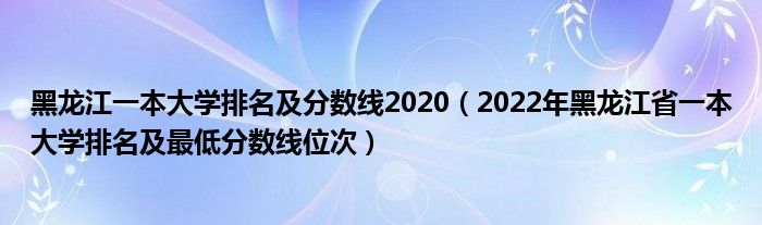 大家好,小高来为大家解答以上问题。黑龙江一本大学排名及分数线2020,2022年黑龙江省一本大学排名及最低分数线位次很多人还不知道,现在让我们一起来看看吧!