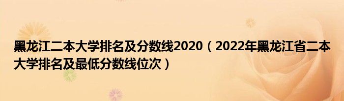 大家好,小高来为大家解答以上问题。黑龙江二本大学排名及分数线2020,2022年黑龙江省二本大学排名及最低分数线位次很多人还不知道,现在让我们一起来看看吧!