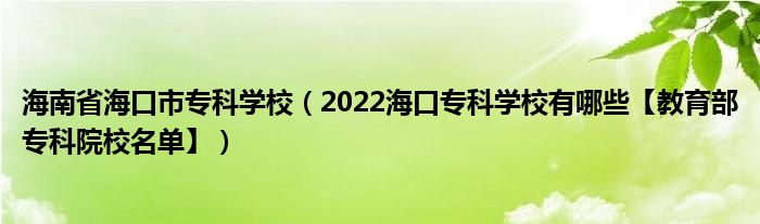 大家好,小高来为大家解答以上问题。海南省海口市专科学校,2022海口专科学校有哪些【教育部专科院校名单】很多人还不知道,现在让我们一起来看看吧!