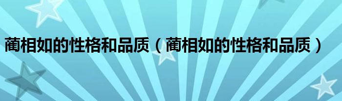 大家好,小高来为大家解答以上问题。蔺相如的性格和品质,蔺相如的性格和品质很多人还不知道,现在让我们一起来看看吧!