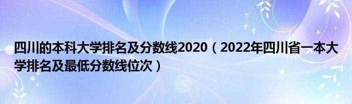 大家好,小高来为大家解答以上问题。四川的本科大学排名及分数线2020,2022年四川省一本大学排名及最低分数线位次很多人还不知道,现在让我们一起来看看吧!