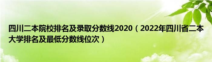 1、注:2022年四川省二本大学排名已经公布,但二本大学的最低录取分数线和最低位次还没有公布,以上二本大学分数线为2021年数据,仅供参考,具体以官方公布为准。以上是部分学校排名信息,想要查看全部学校排名及分数线请下载蝶变志愿APP查看。