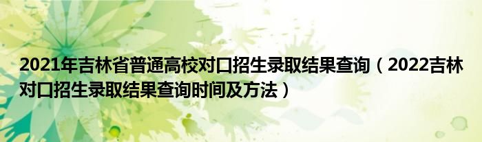 大家好,小高来为大家解答以上问题。2021年吉林省普通高校对口招生录取结果查询,2022吉林对口招生录取结果查询时间及方法很多人还不知道,现在让我们一起来看看吧!