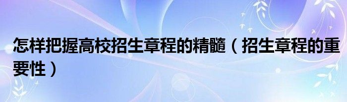 大家好,小高来为大家解答以上问题。怎样把握高校招生章程的精髓,招生章程的重要性很多人还不知道,现在让我们一起来看看吧!
