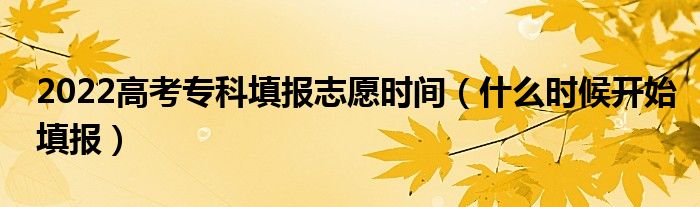 2022高考专科填报时间在7月末-8月初左右,具体时间以当地教育考试院发布为准。