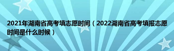 大家好,小高来为大家解答以上问题。2021年湖南省高考填志愿时间,2022湖南省高考填报志愿时间是什么时候很多人还不知道,现在让我们一起来看看吧!