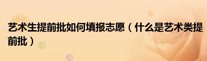 大家好,小高来为大家解答以上问题。艺术生提前批如何填报志愿,什么是艺术类提前批很多人还不知道,现在让我们一起来看看吧!
