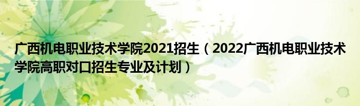 大家好,小高来为大家解答以上问题。广西机电职业技术学院2021招生,2022广西机电职业技术学院高职对口招生专业及计划很多人还不知道,现在让我们一起来看看吧!