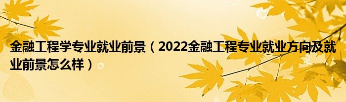 一、2022金融工程专业就业前景