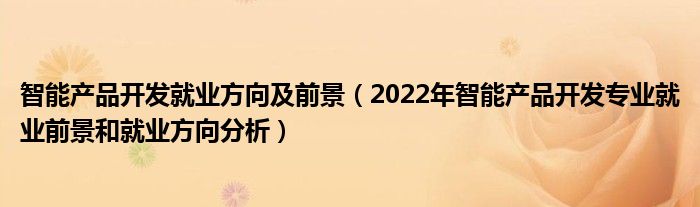 大家好,小高来为大家解答以上问题。智能产品开发就业方向及前景,2022年智能产品开发专业就业前景和就业方向分析很多人还不知道,现在让我们一起来看看吧!