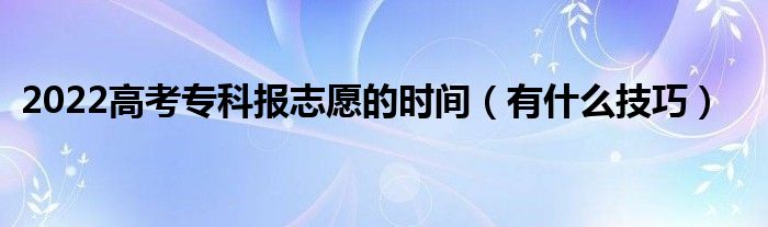 大家好,小高来为大家解答以上问题。2022高考专科报志愿的时间,有什么技巧很多人还不知道,现在让我们一起来看看吧!