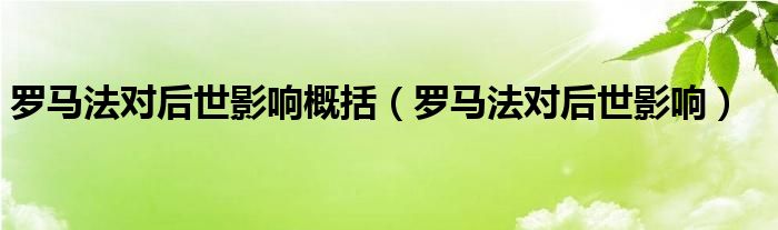 大家好,小高来为大家解答以上问题。罗马法对后世影响概括,罗马法对后世影响很多人还不知道,现在让我们一起来看看吧!