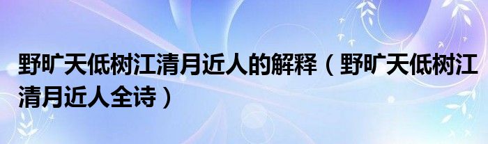 大家好,小高来为大家解答以上问题。野旷天低树江清月近人的解释,野旷天低树江清月近人全诗很多人还不知道,现在让我们一起来看看吧!